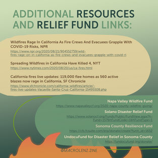 Wildfires Rage In California As Fire Crews And Evacuees Grapple With COVID-19 Risks, NPR https://www.npr.org/2020/08/21/904552759/wildfires-rage-on-in-california-as-fire-crews-and-evacuees-grapple-with-covid-ri